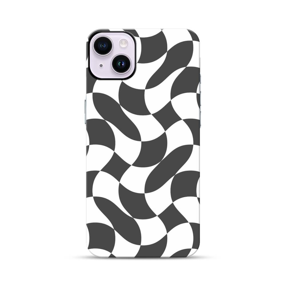 Verdrehte Schwarz Weiße Karos Apple iPhone 14 Plus Hybrid Case● Rundum bedruckbar