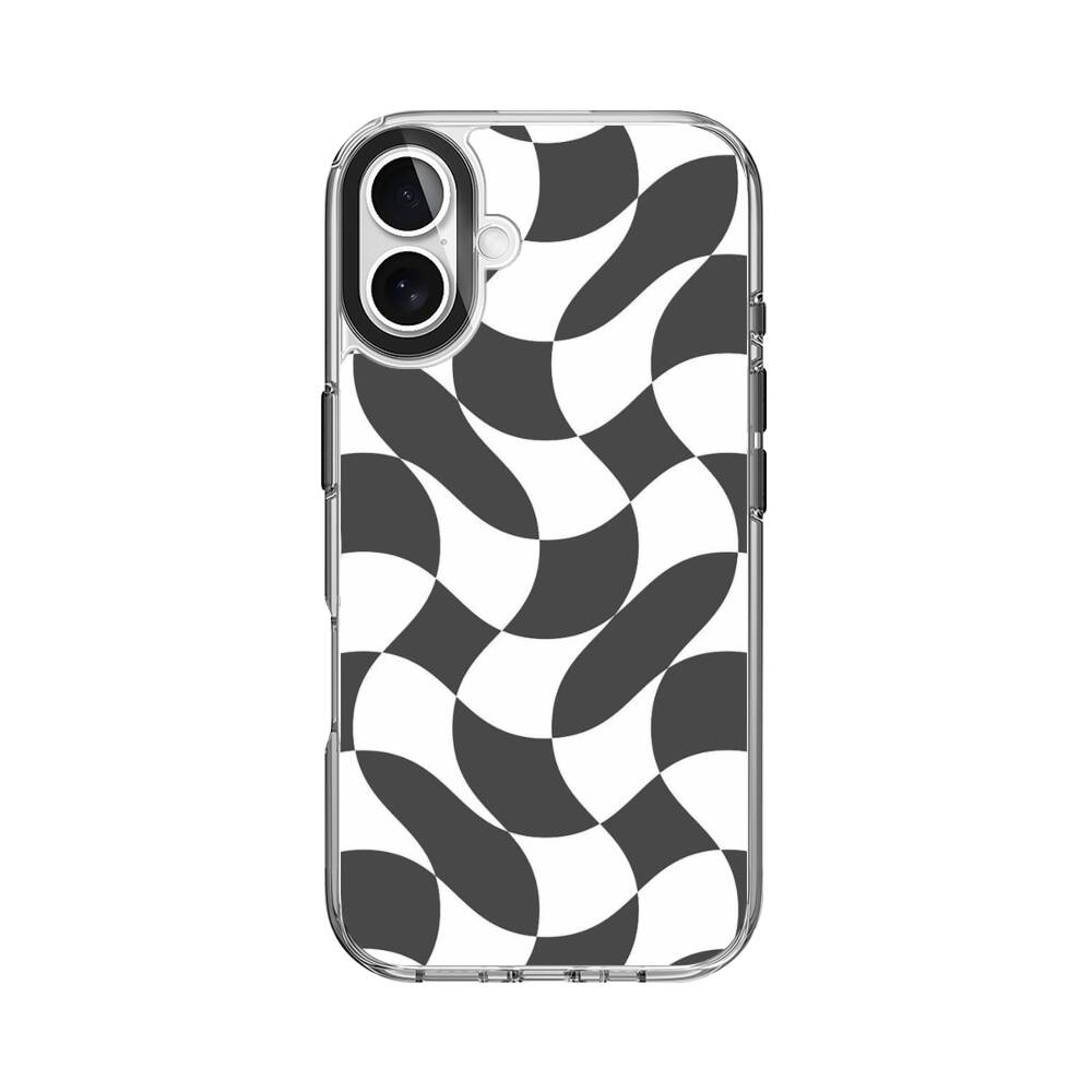 Verdrehte Schwarz Weiße Karos Apple iPhone 16 Plus Silikon Hülle● Sehr robust & langlebig