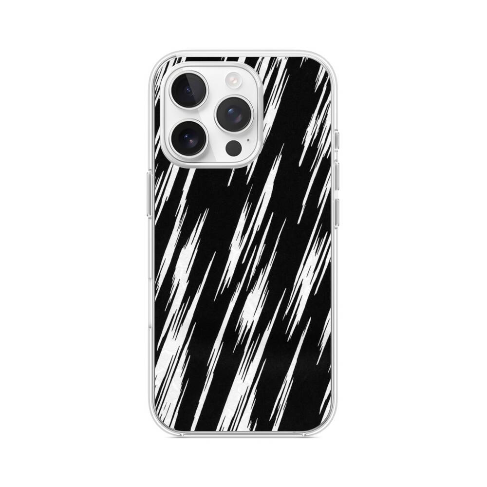 Störimplus im Schwarz und Weiß iPhone 15 Pro MagSafe‑kompatible Silikonhülle mit Kamera‑Kickstand● Sehr robust & langlebig