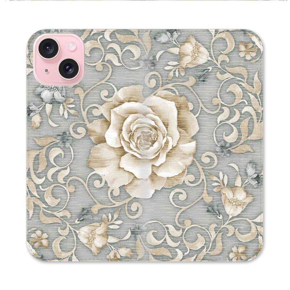 Feine Rosemuster Apple iPhone 15 Flip Case● Seitlich klappbar