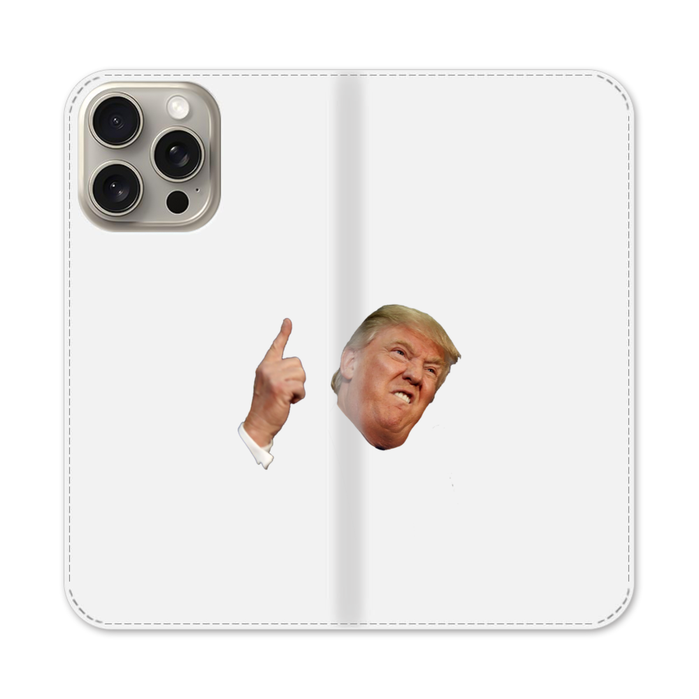 Trumps lustiges Gesicht Apple iPhone 15 Pro Max Flip Case● Seitlich klappbar