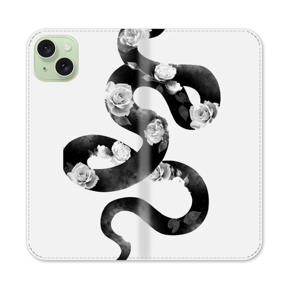Schlange mit blumen Apple iPhone 15 Plus Flip Case● Seitlich klappbar
