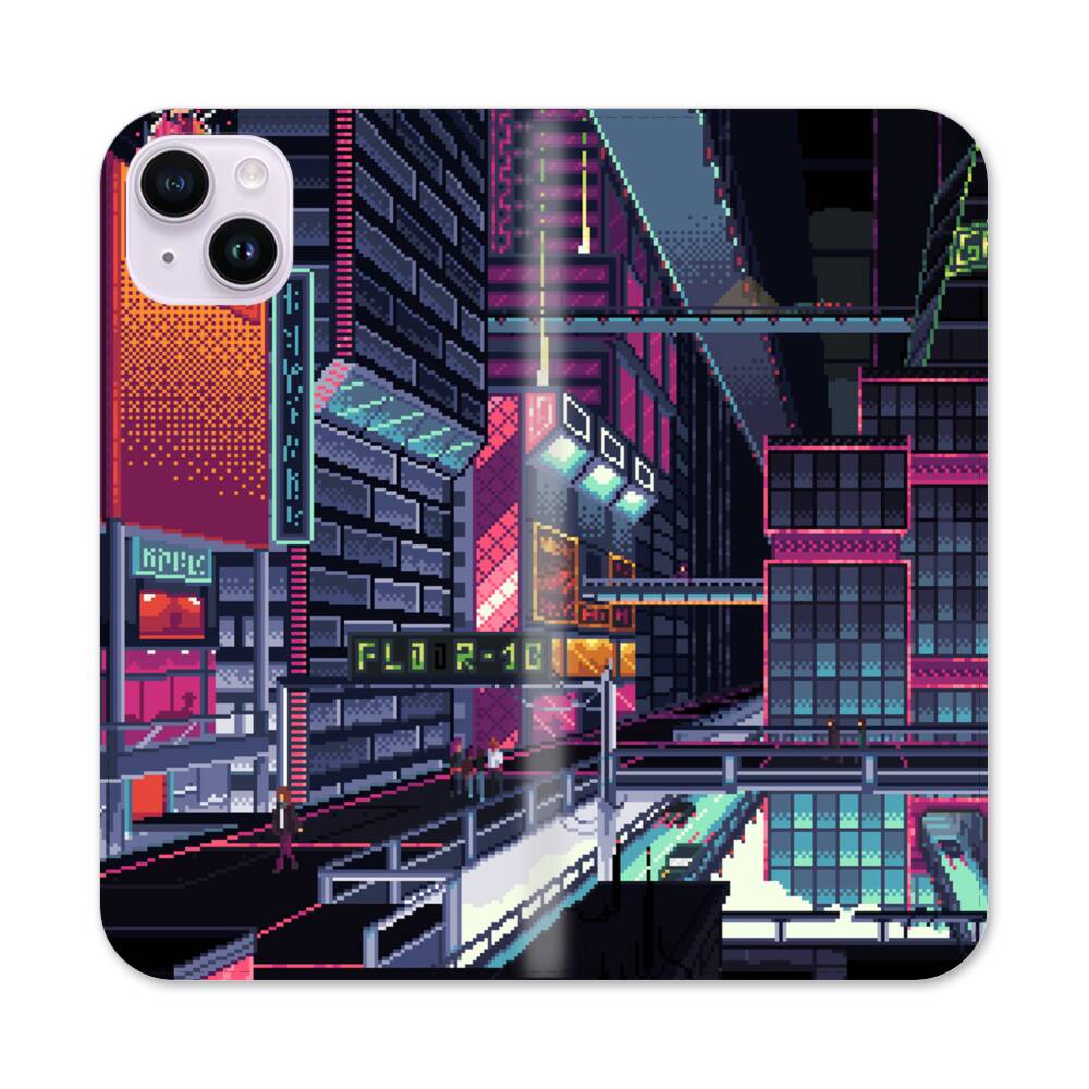 Cyberpunk Stadt Apple iPhone 14 Plus Flip Case● Seitlich klappbar