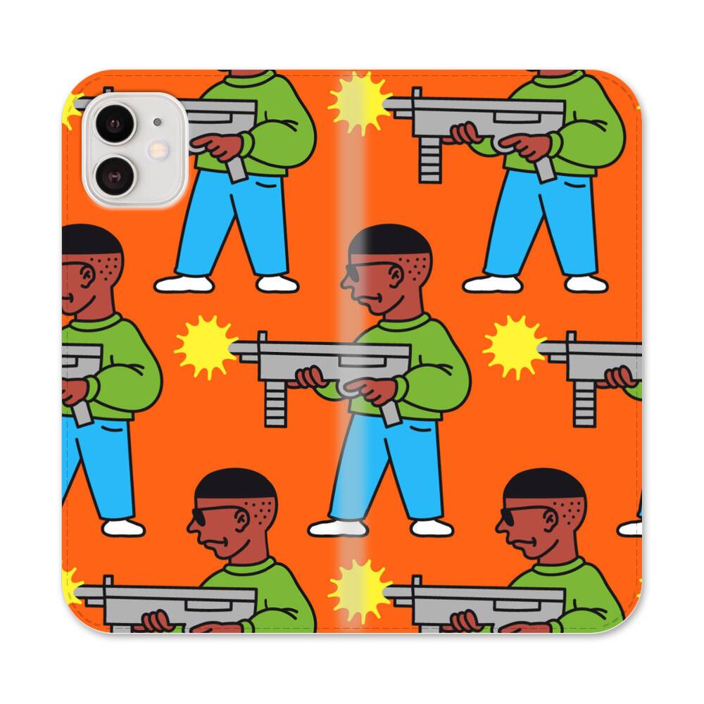 Mann mit Maschinengewehr Apple iPhone 12 Flip Case● Seitlich klappbar