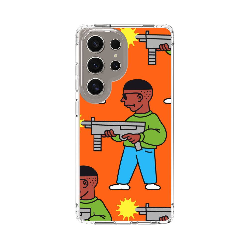 Mann mit Maschinengewehr Samsung Galaxy S25 Ultra Silikon Hülle● Sehr robust & langlebig