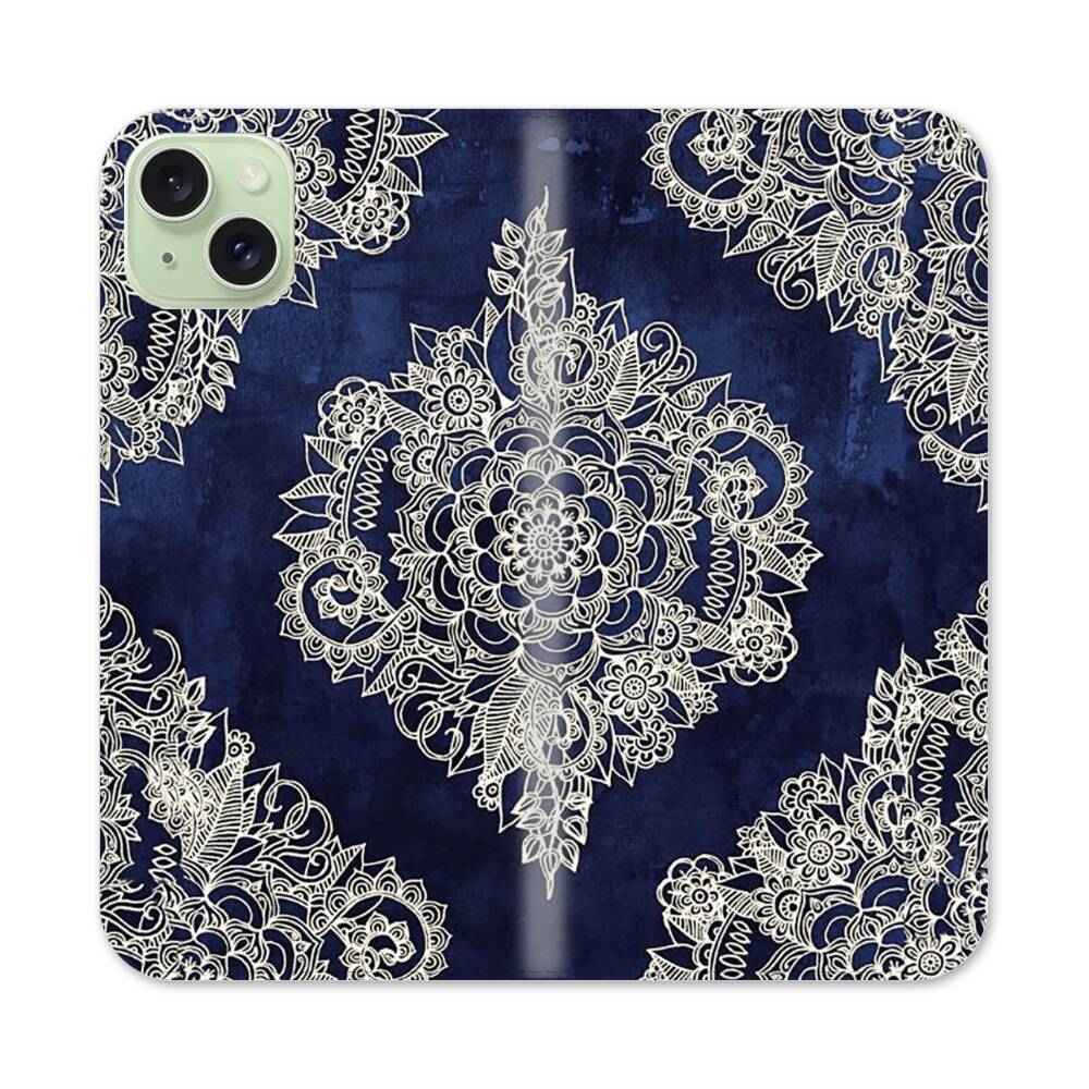 Creme Blumenmarokkaner Apple iPhone 15 Plus Flip Case● Seitlich klappbar