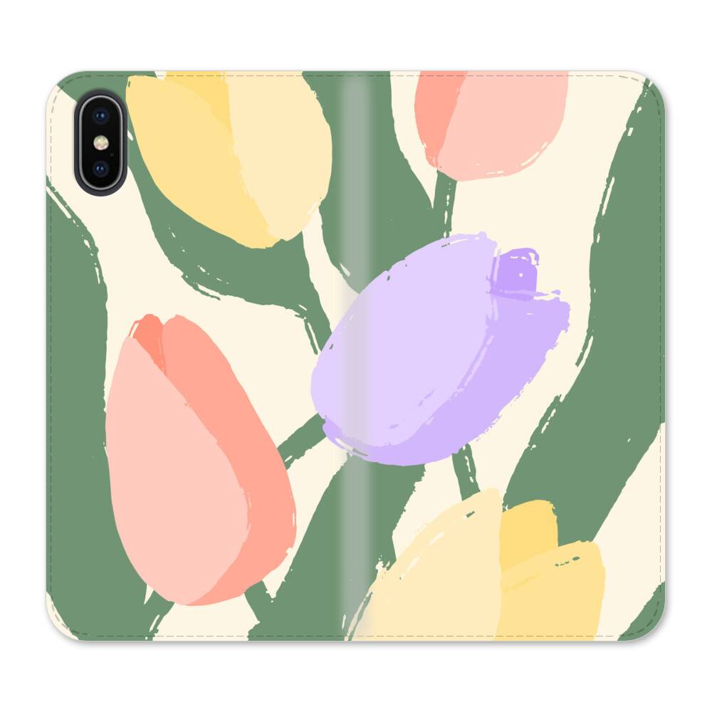 Hand Gezeichnete Tulipa iPhone XS Wallet Leder Hülle● Seitlich klappbar
