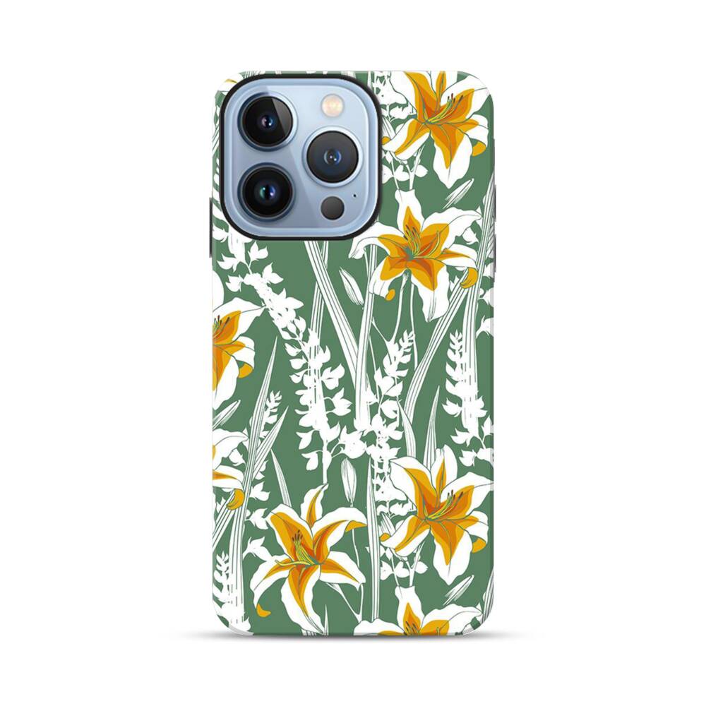 Tropische Lilien Apple iPhone 13 Pro Hybrid Case● Rundum bedruckbar