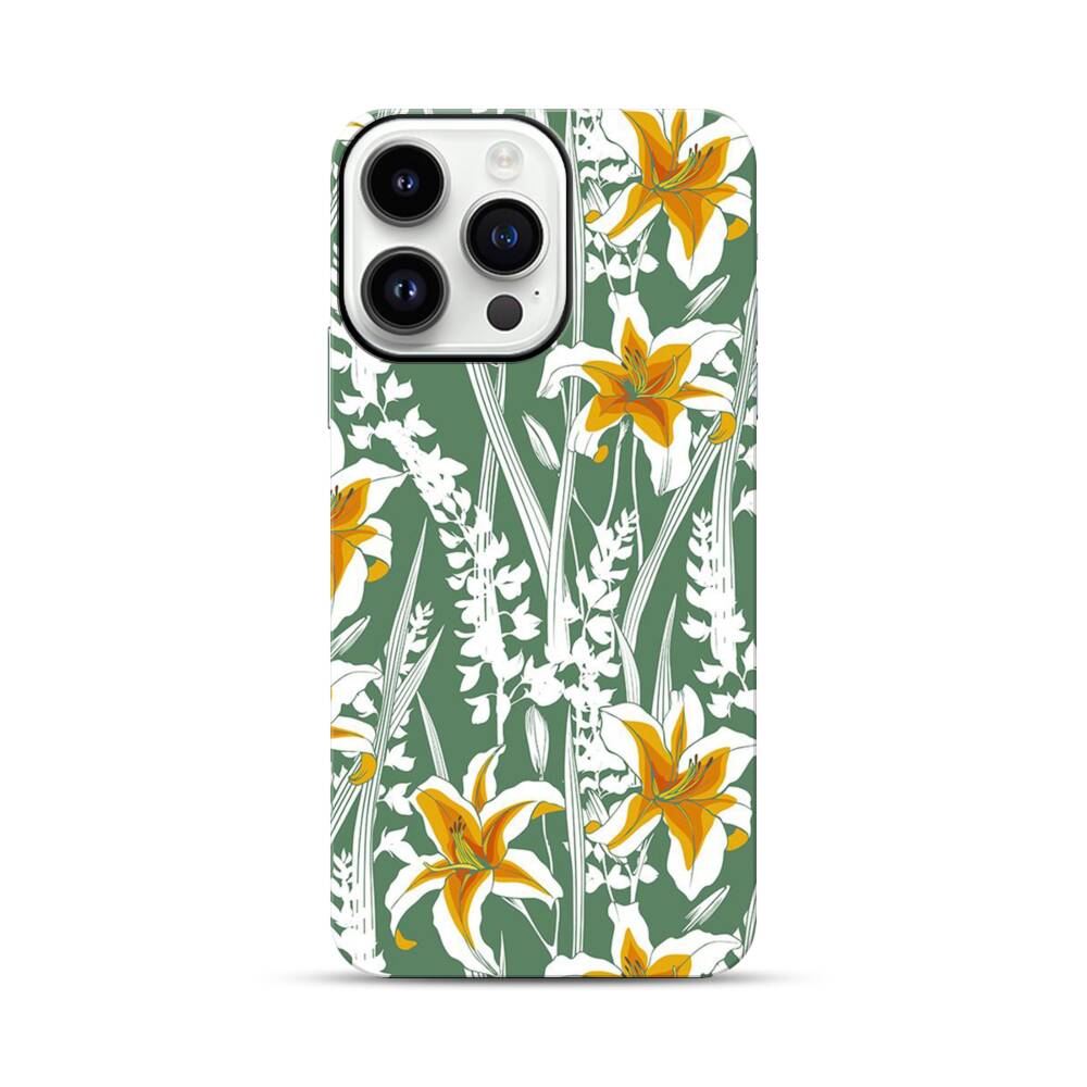 Tropische Lilien Apple iPhone 14 Pro Max Hybrid Case● Rundum bedruckbar