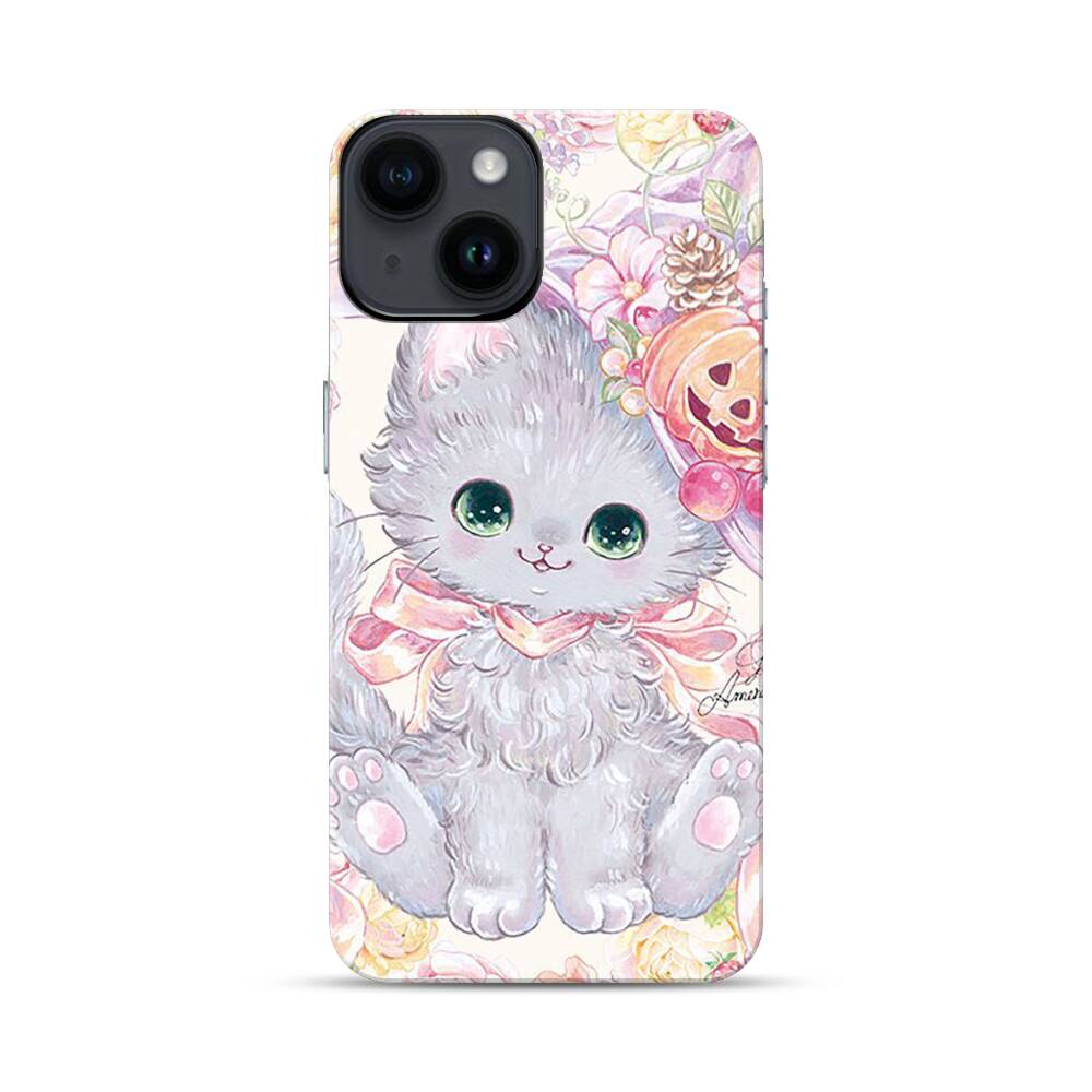 Kawaii Katze mit Kürbis Apple iPhone 14 Hybrid Case● Rundum bedruckbar