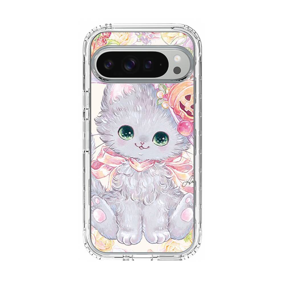 Kawaii Katze mit Kürbis Google Pixel 9 Pro XL Silikon Hülle● Sehr robust & langlebig