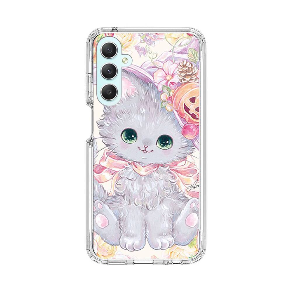 Kawaii Katze mit Kürbis Samsung Galaxy A34 Silikon Hülle● Sehr robust & langlebig