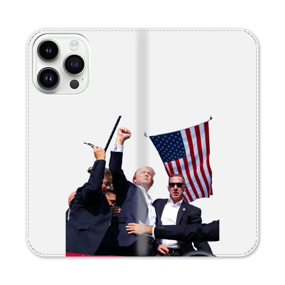 Trump schießen Apple iPhone 14 Pro Max Flip Case● Seitlich klappbar