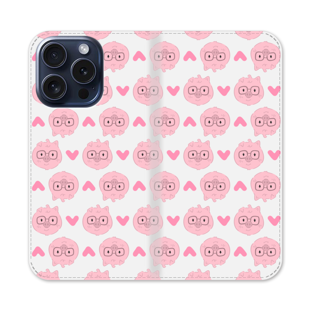 Kawaii Schweinchen Apple iPhone 15 Pro Flip Case● Seitlich klappbar
