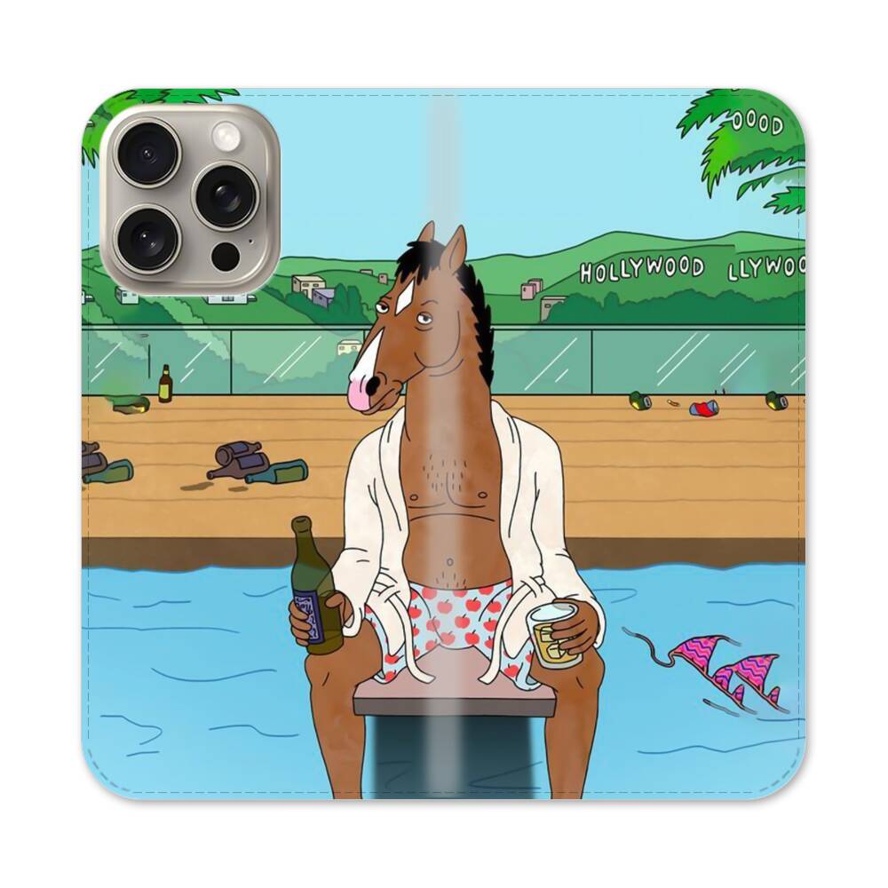 BoJack Horseman im Urlaub Apple iPhone 15 Pro Max Flip Case● Seitlich klappbar