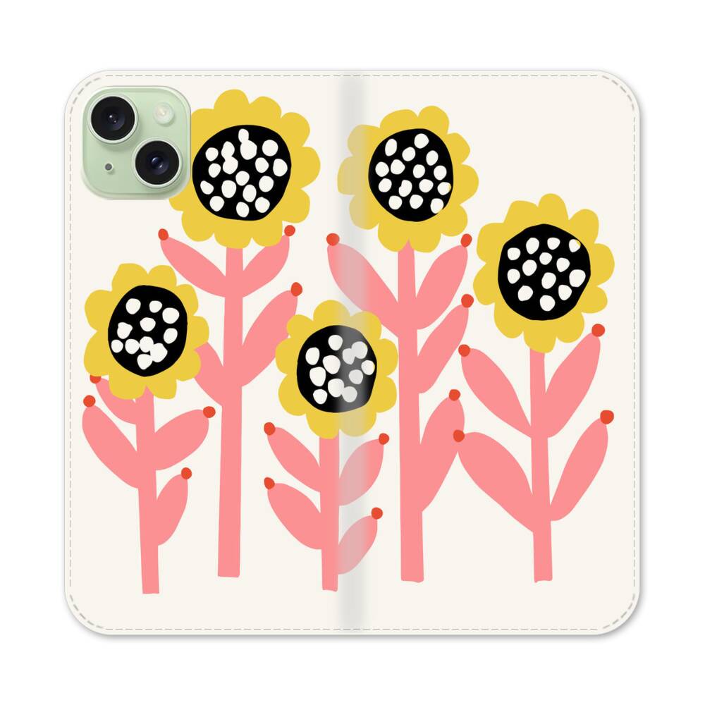 Handgezeichnete Sonnenblumen Apple iPhone 15 Plus Flip Case● Seitlich klappbar