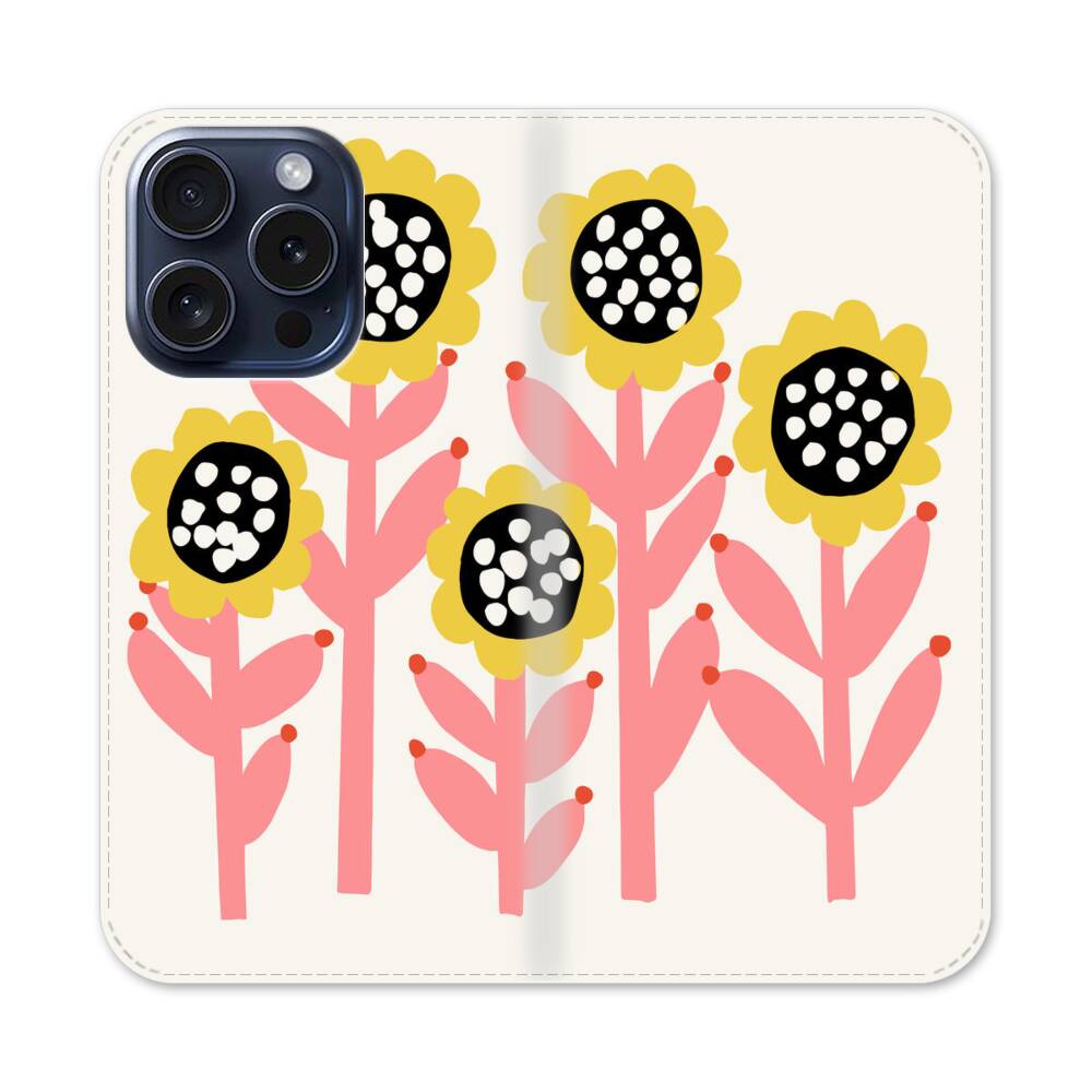 Handgezeichnete Sonnenblumen Apple iPhone 15 Pro Flip Case● Seitlich klappbar