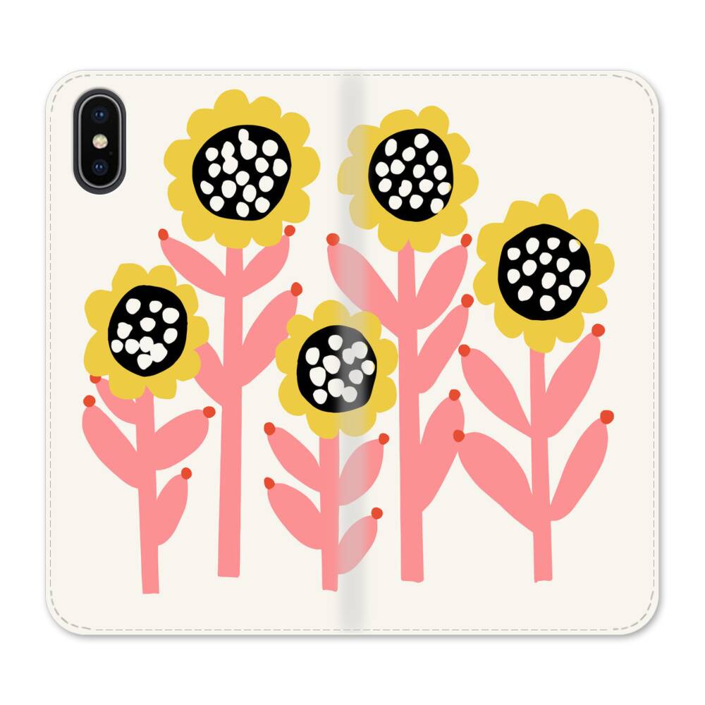 Handgezeichnete Sonnenblumen iPhone XS Wallet Leder Hülle● Seitlich klappbar