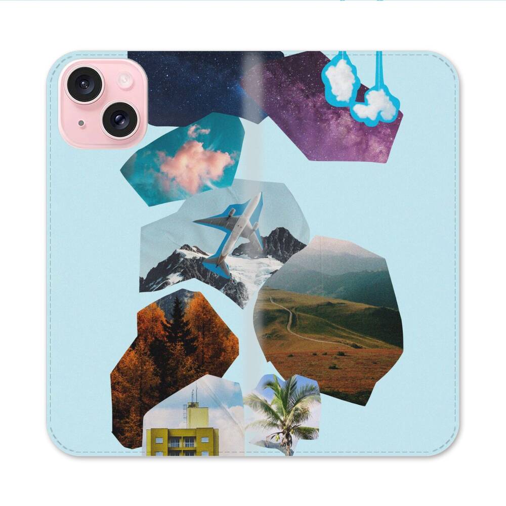Natürliche Landschaft Collagg Apple iPhone 15 Flip Case● Seitlich klappbar
