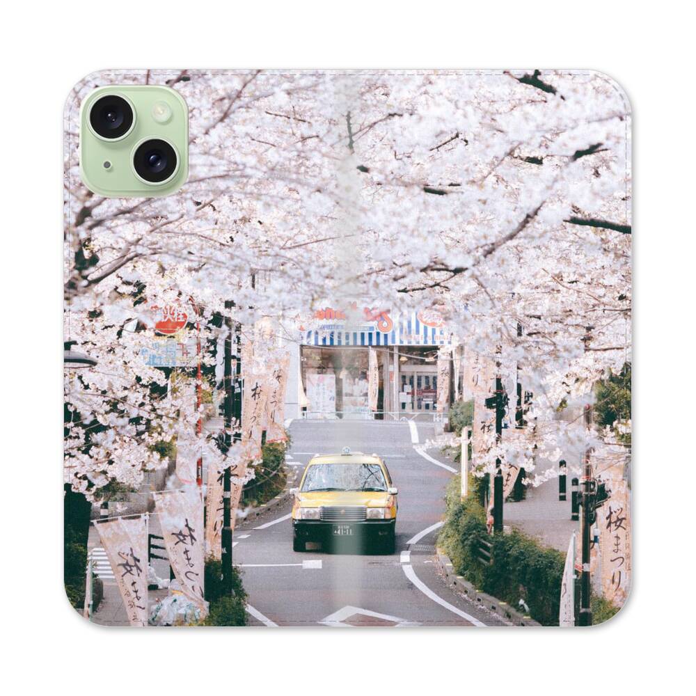 Ein Weg mit Sakura Apple iPhone 15 Plus Flip Case● Seitlich klappbar