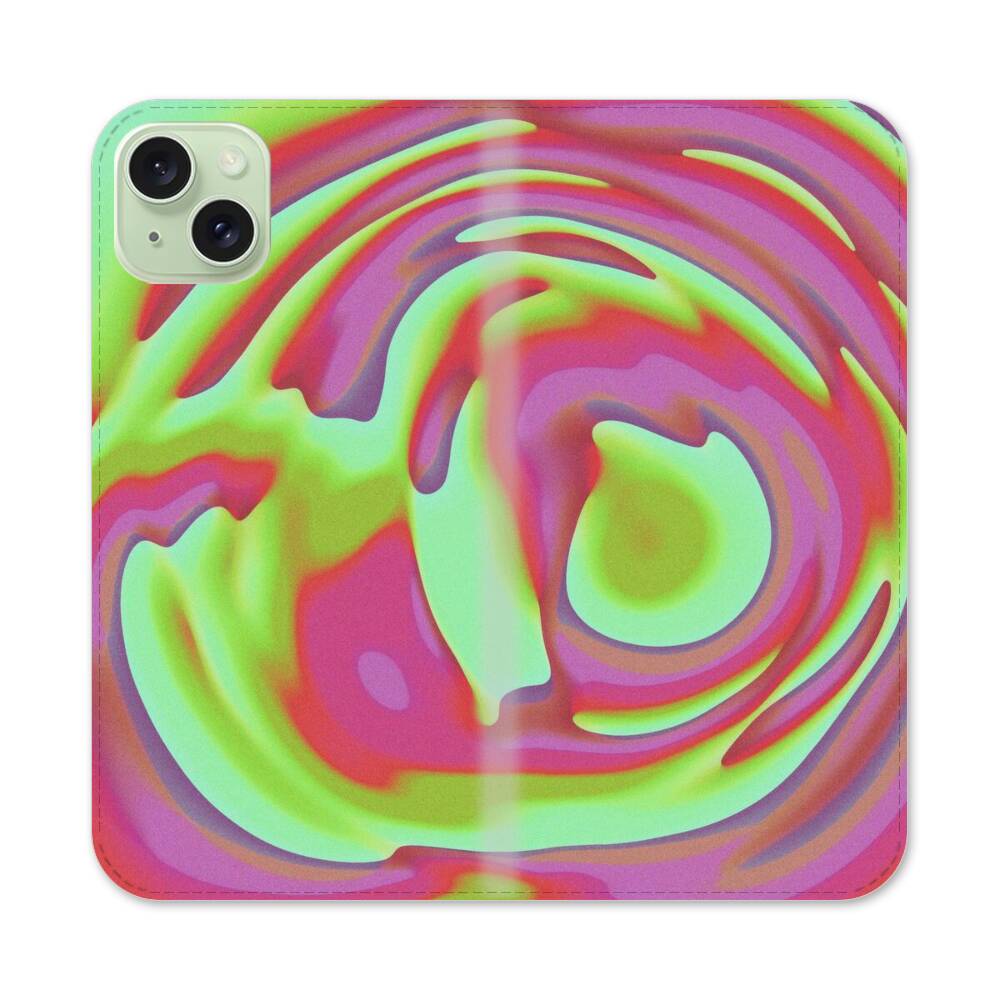 Psychedelische Wellen Apple iPhone 15 Plus Flip Case● Seitlich klappbar