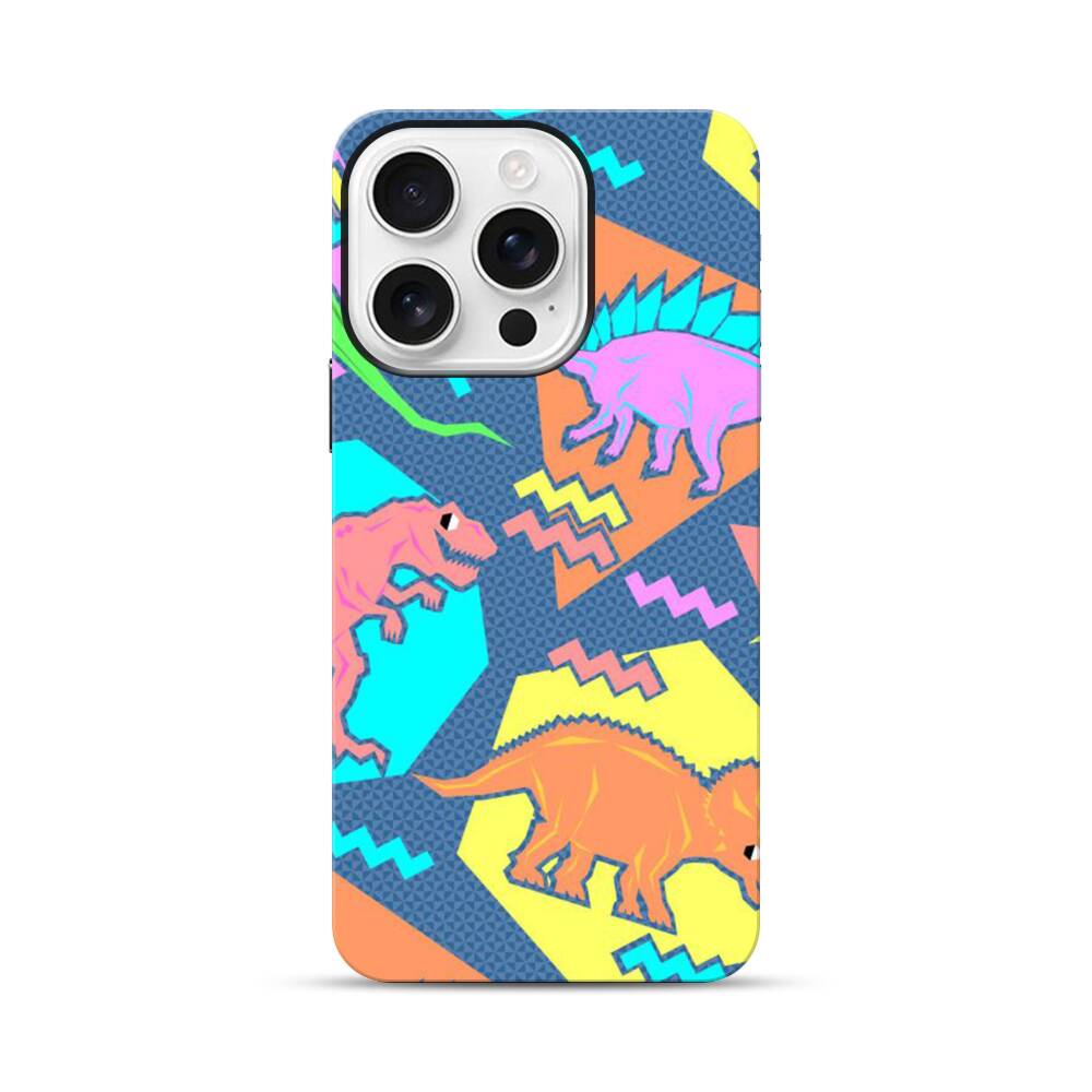 Neon Dinosaurier Apple iPhone 16 Pro Hybrid Case● Rundum bedruckbar