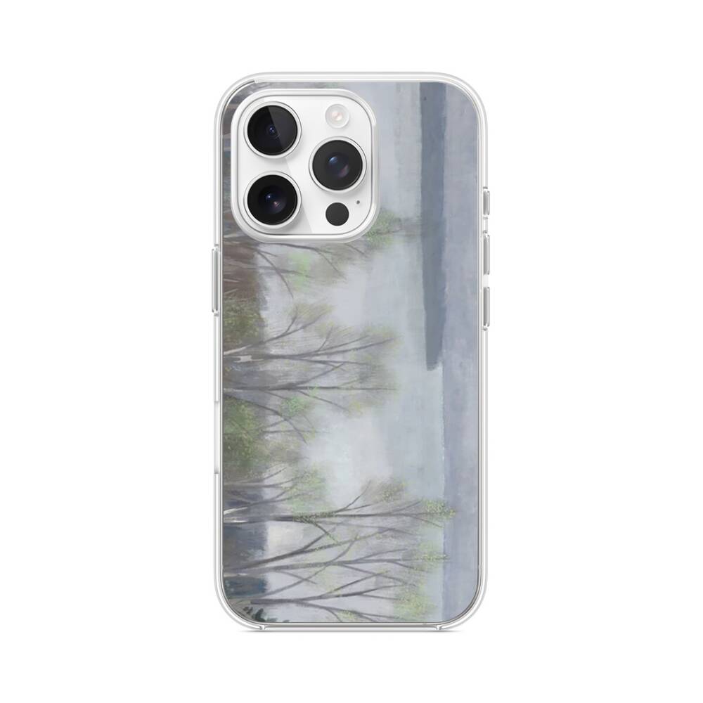 Flussufer im Winter iPhone 14 Pro MagSafe‑kompatible Silikonhülle mit Kamera‑Kickstand● Sehr robust & langlebig