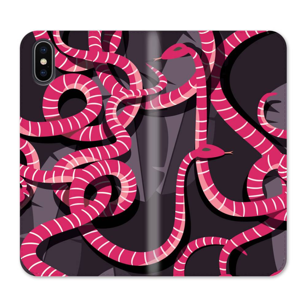Schlange Pink iPhone XS Wallet Leder Hülle● Seitlich klappbar