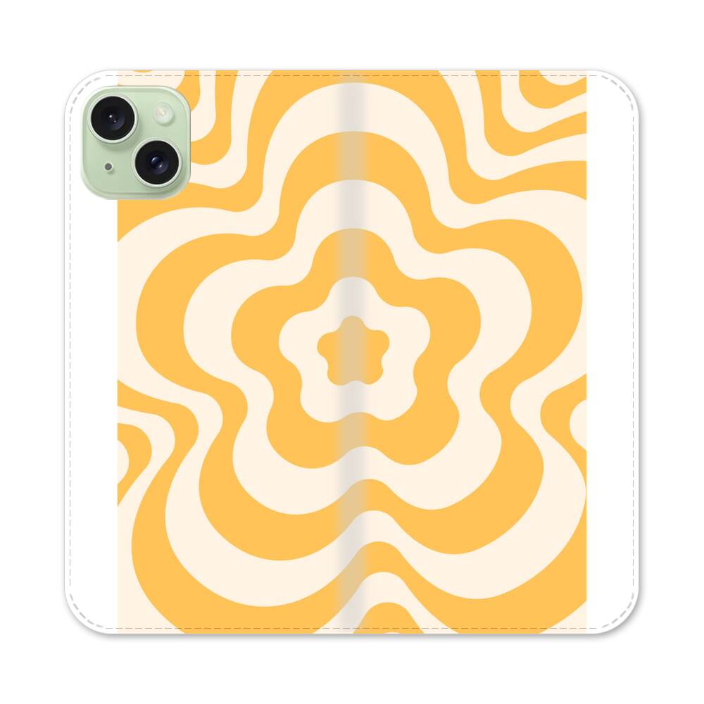 Gelber Blumenstrudel Apple iPhone 15 Plus Flip Case● Seitlich klappbar