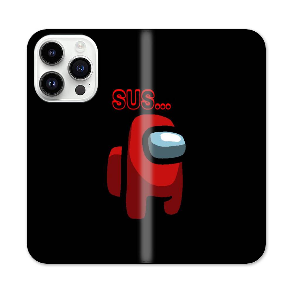 Red SUS Among Us Apple iPhone 14 Pro Flip Case● Seitlich klappbar
