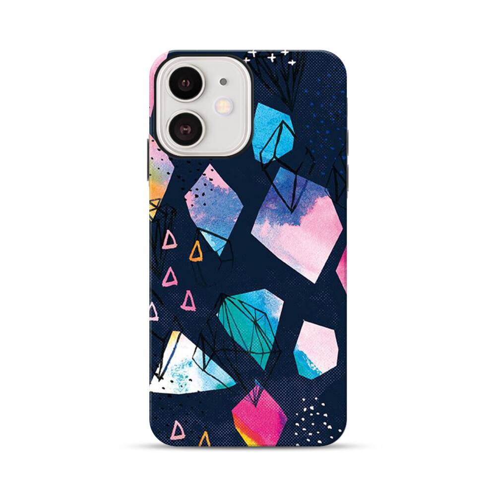 Bunte Handgezeichnete Diamanten Apple iPhone 12 Hybrid Case● Rundum bedruckbar
