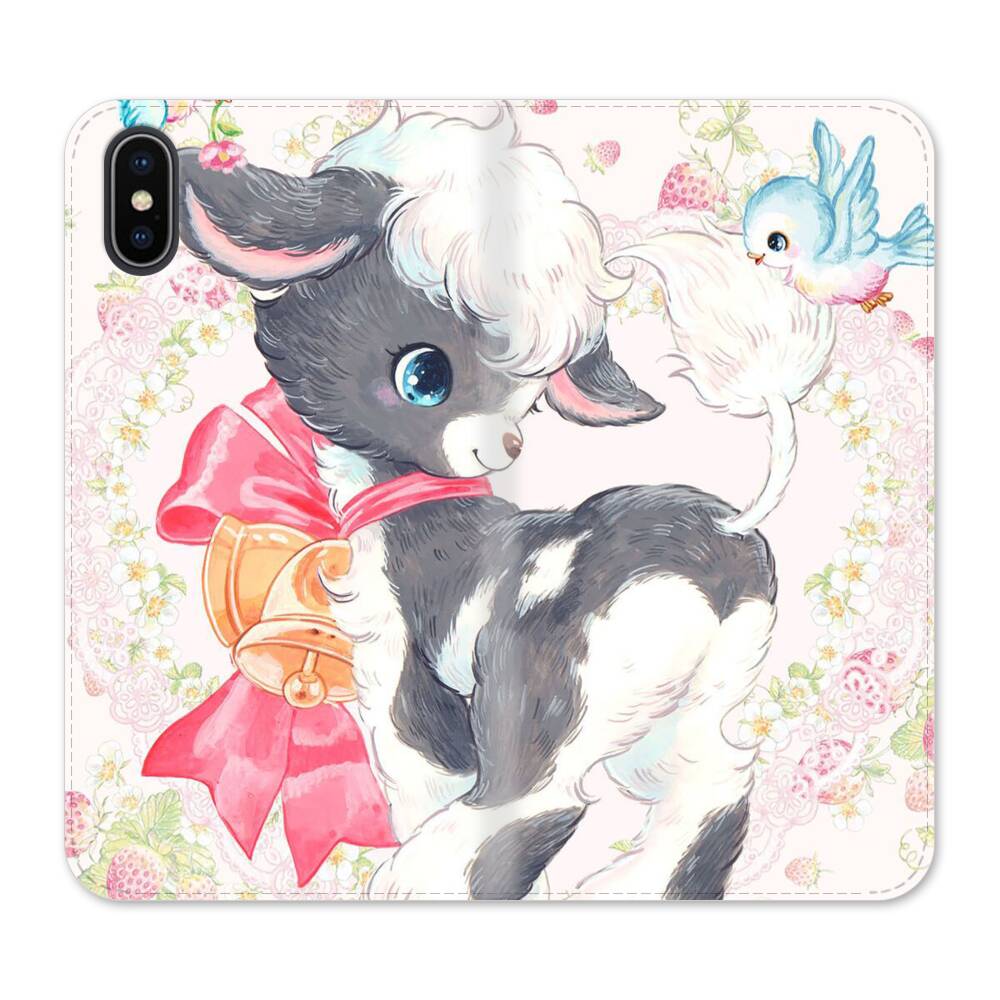 Kawaii Ziege mit Erdbeeren iPhone X Wallet Leder Hülle● Seitlich klappbar