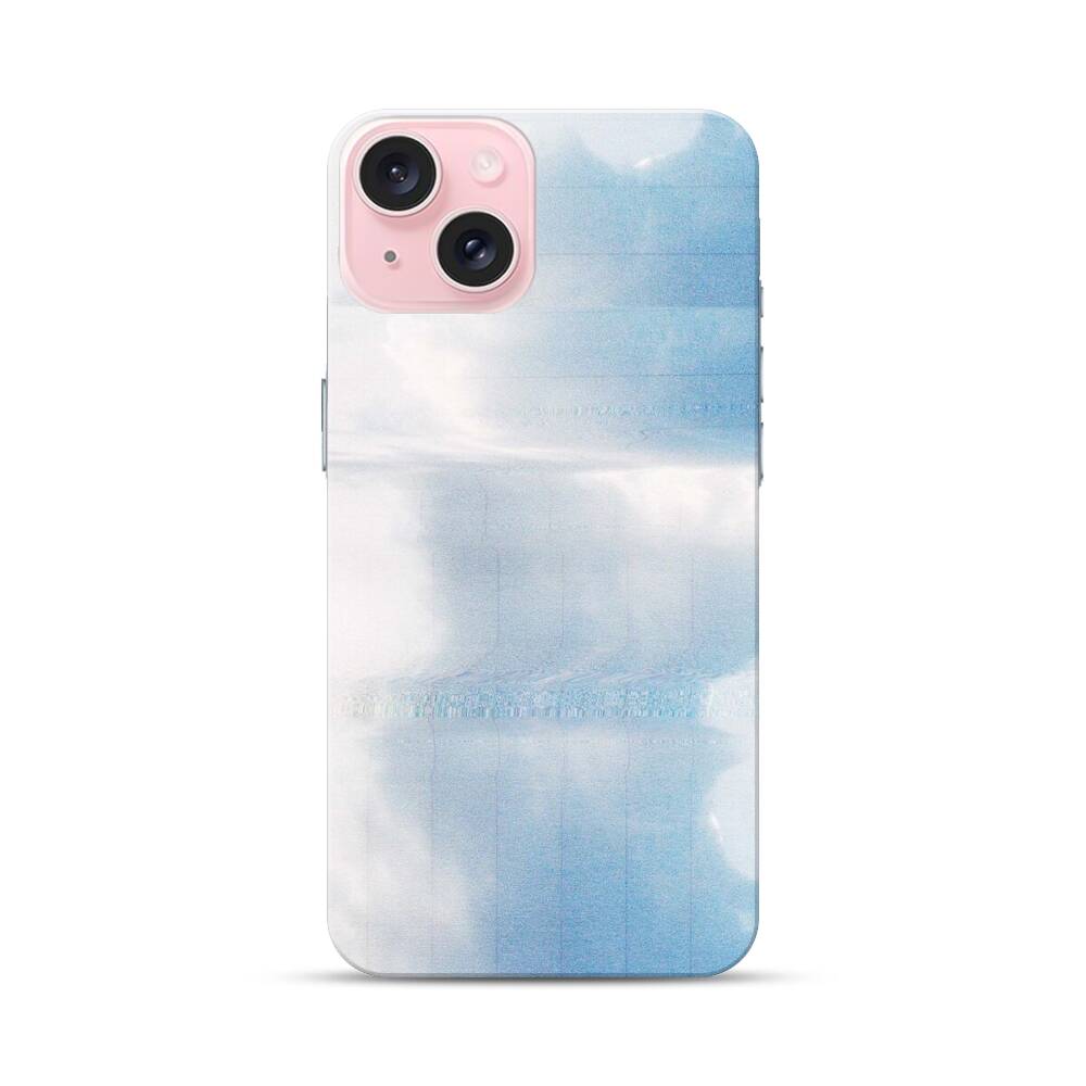 Glitch-Wolken Apple iPhone 15 Hülle● Rundum bedruckbar