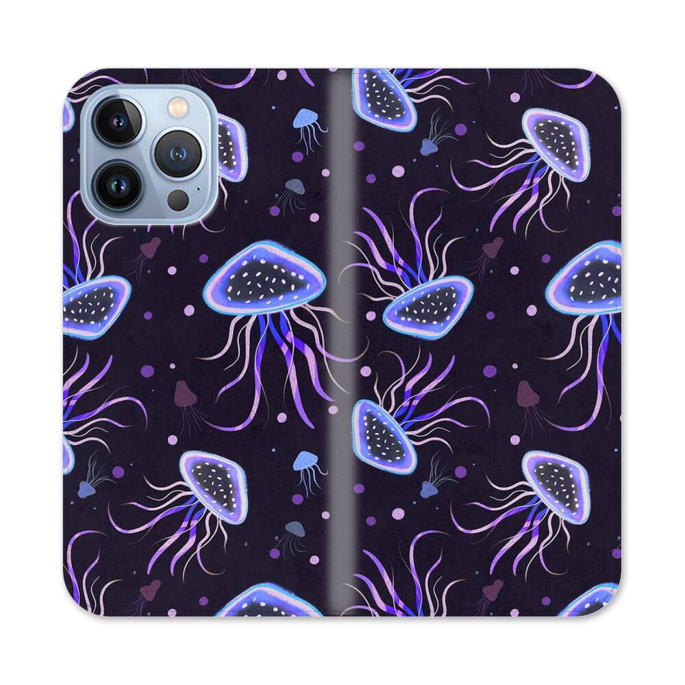 Nahtlose niedliche Quallen Apple iPhone 13 Pro Flip Case● Seitlich klappbar