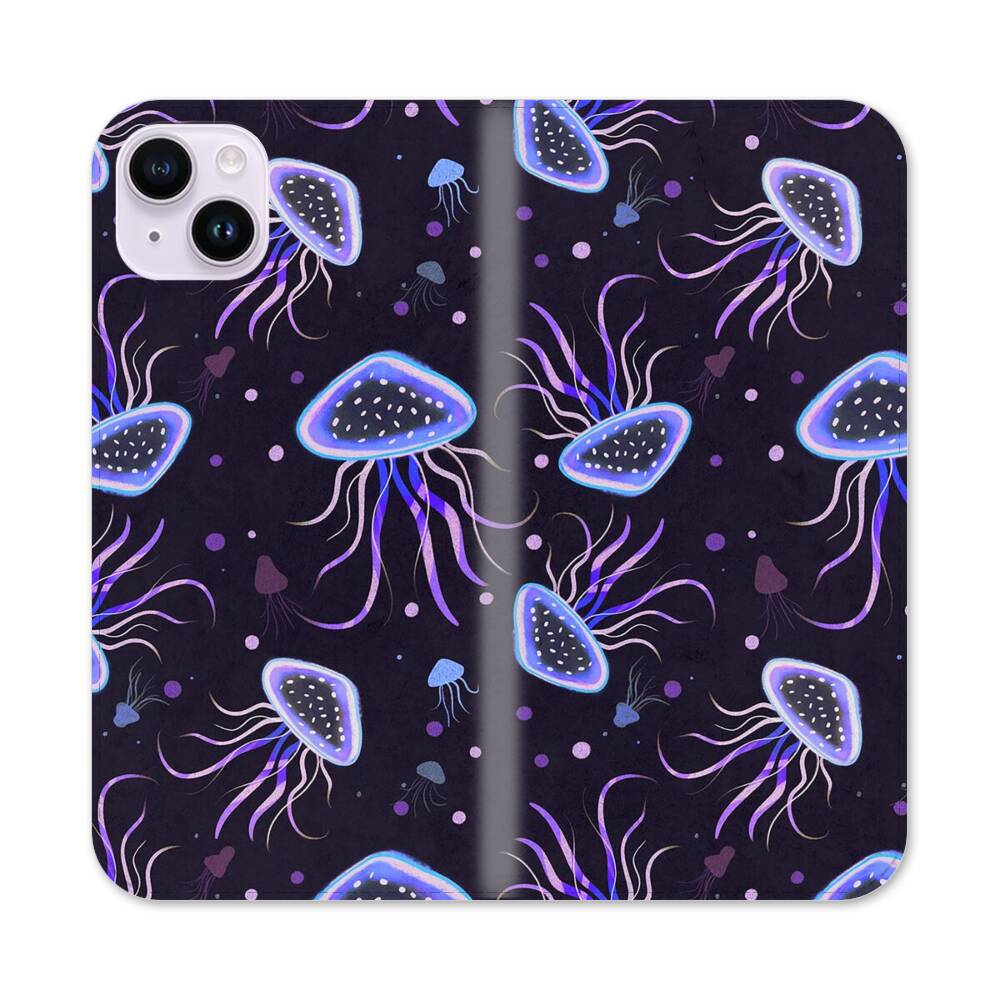 Nahtlose niedliche Quallen Apple iPhone 14 Plus Flip Case● Seitlich klappbar