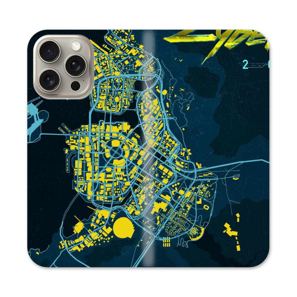 Cyberpunk Landkarte Apple iPhone 15 Pro Max Flip Case● Seitlich klappbar