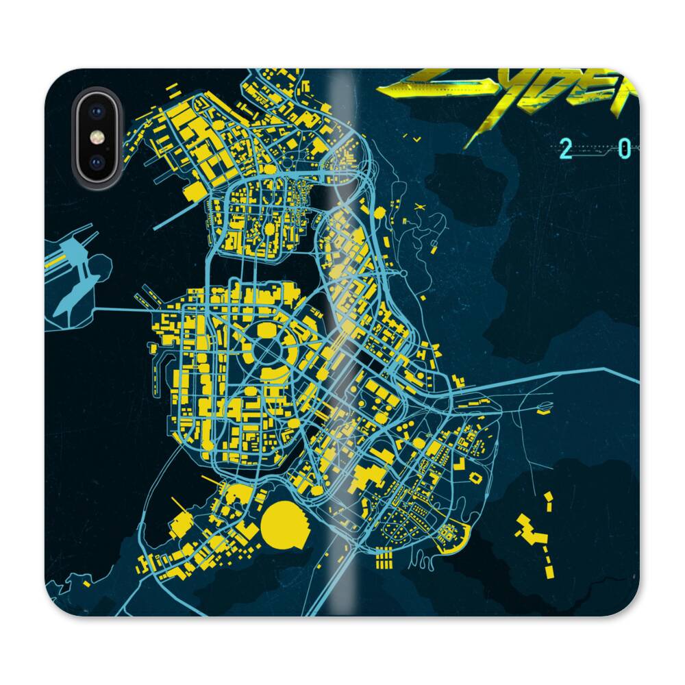 Cyberpunk Landkarte iPhone XS Wallet Leder Hülle● Seitlich klappbar