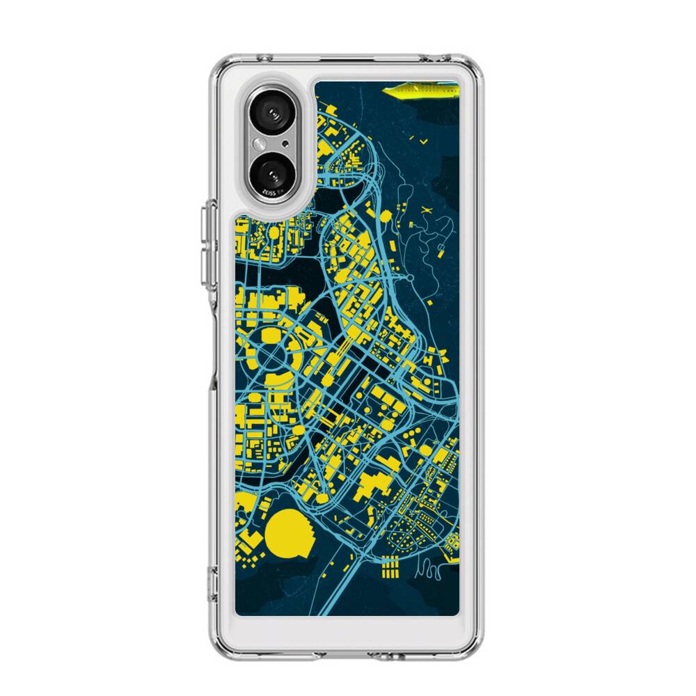 Cyberpunk Landkarte Sony Xperia 5 V Silikon Hülle● Sehr robust & langlebig