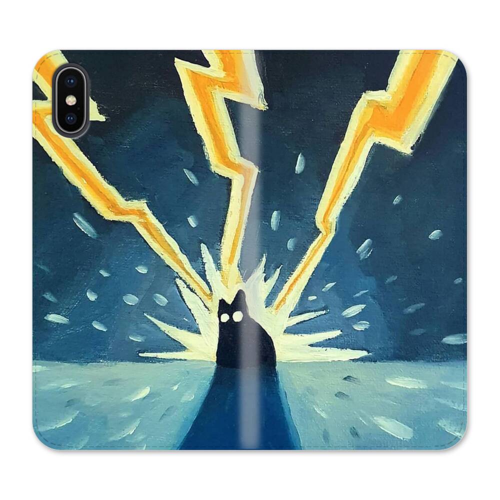 Katze unter der Blitzen iPhone XS Wallet Leder Hülle● Seitlich klappbar
