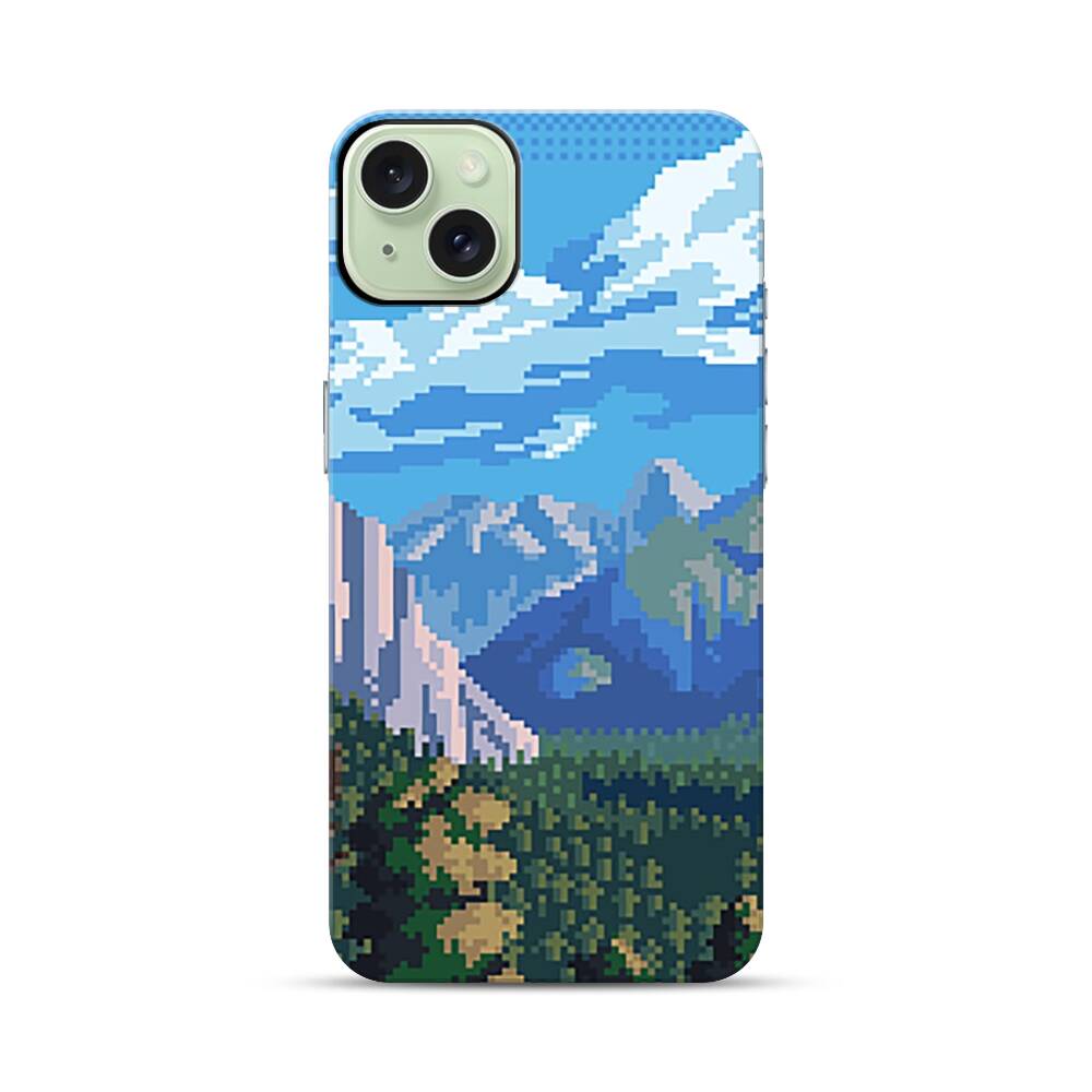 Der schöne verpixelte Wald Apple iPhone 15 Plus Hybrid Case● Rundum bedruckbar