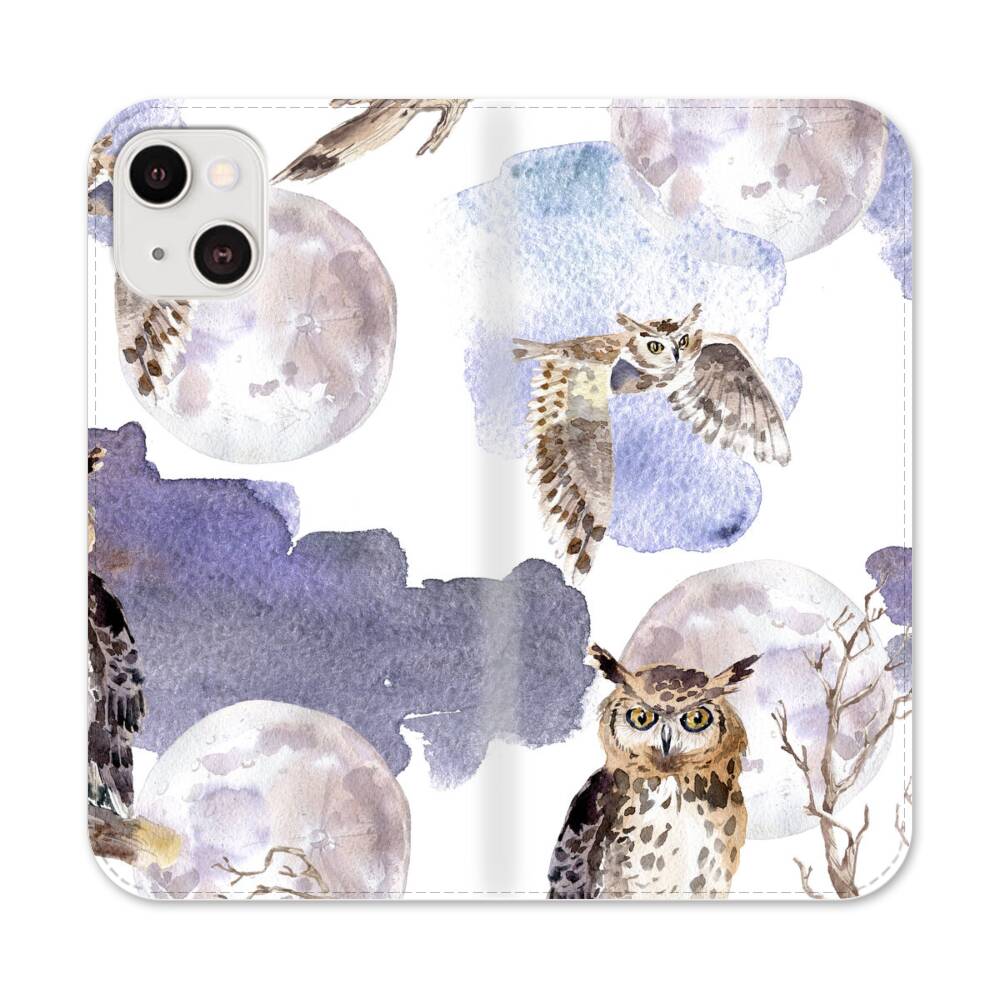 Hand Gezeichnete Eule Apple iPhone 13 Mini Flip Case● Seitlich klappbar