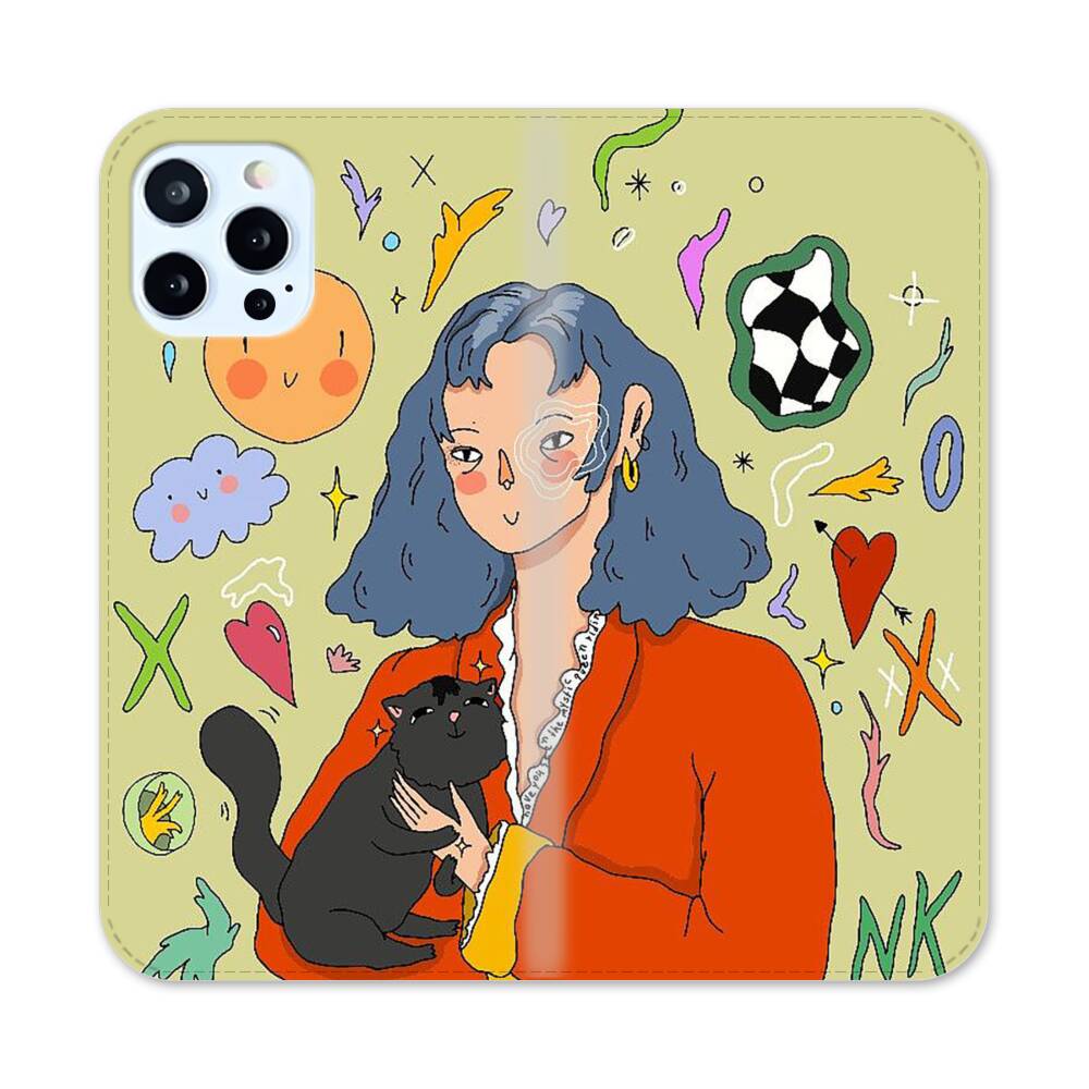Dame mit Katze Apple iPhone 12 Pro Flip Case● Seitlich klappbar