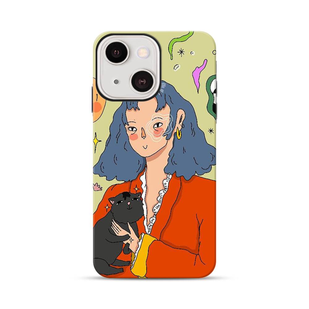 Dame mit Katze Apple iPhone 13 Mini Hybrid Case● Rundum bedruckbar
