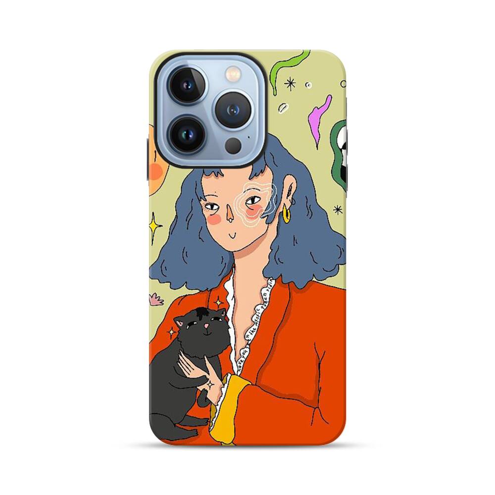 Dame mit Katze Apple iPhone 13 Pro Hybrid Case● Rundum bedruckbar