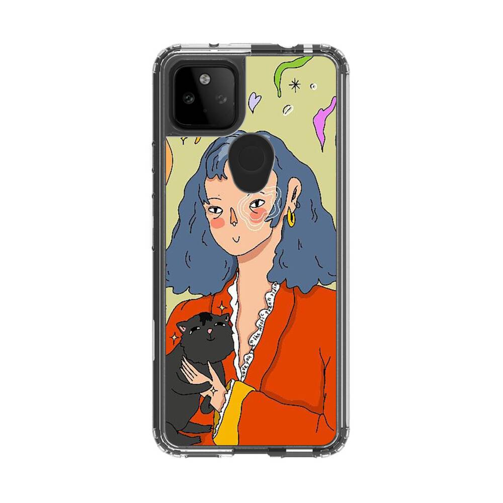Dame mit Katze Google Pixel 5a 5G Silikon Hülle● Sehr robust & langlebig