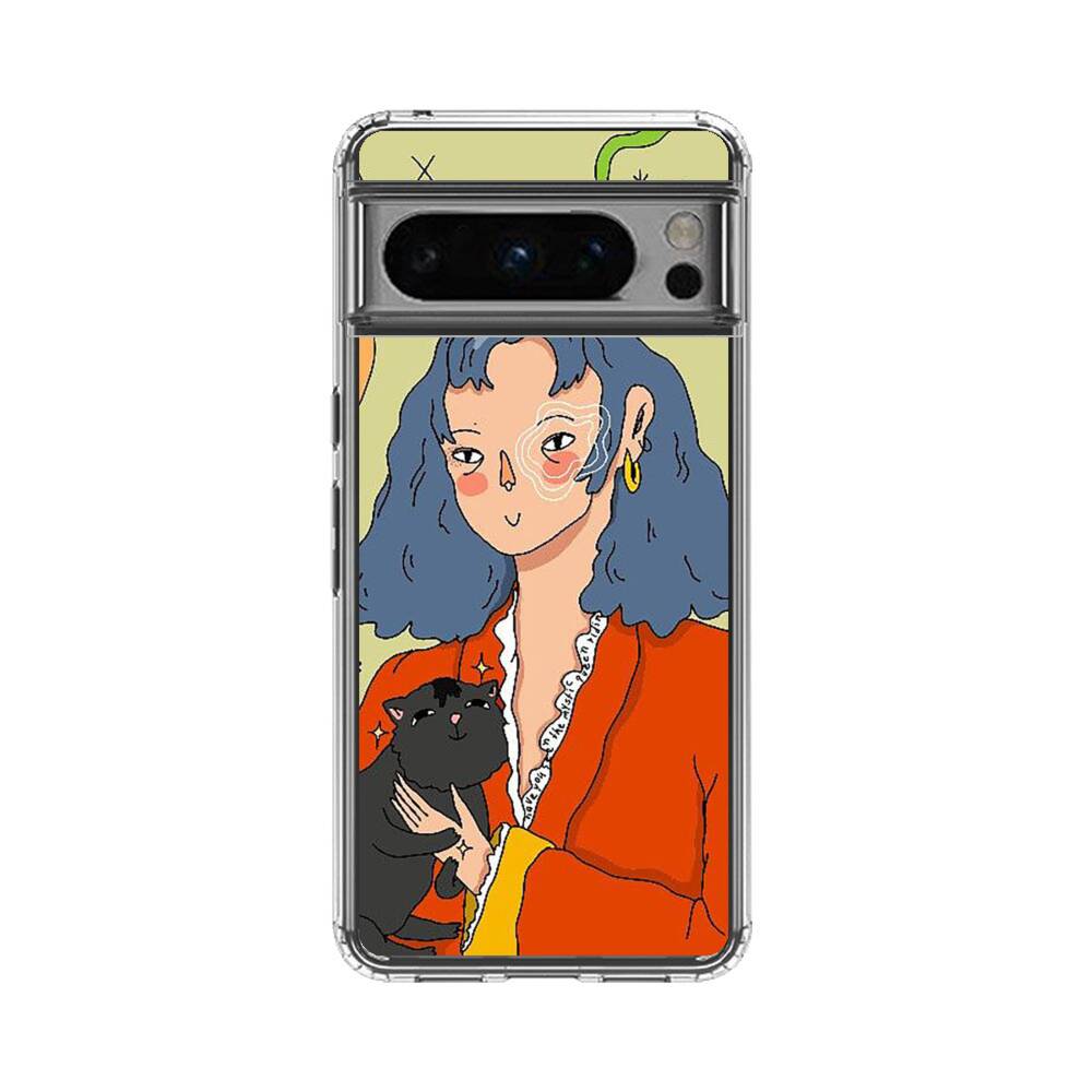 Dame mit Katze Google Pixel 8 Pro Silikon Hülle● Sehr robust & langlebig
