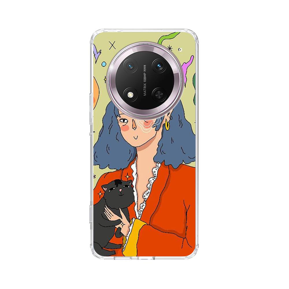 Dame mit Katze Huawei Honor Magic 7 Lite Silikon Hülle● Sehr robust & langlebig