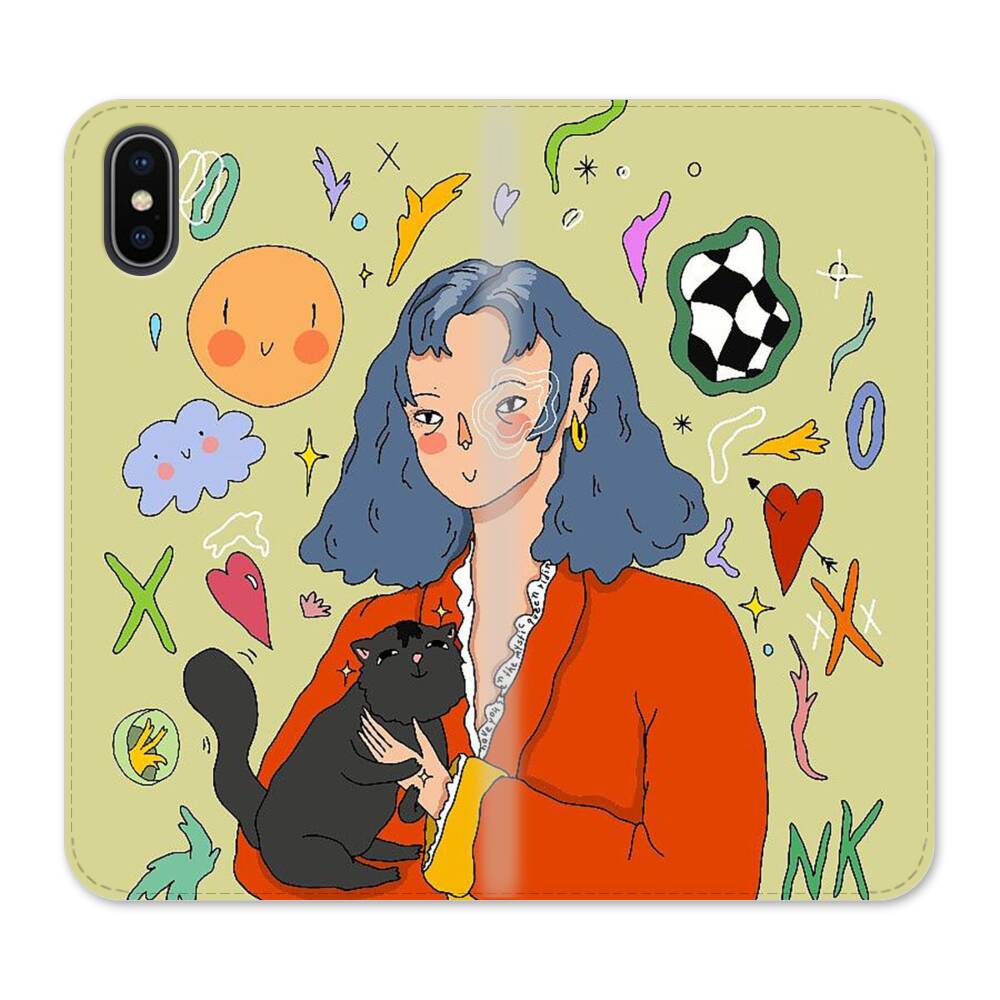 Dame mit Katze iPhone XS Wallet Leder Hülle● Seitlich klappbar
