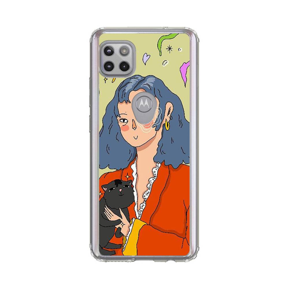 Dame mit Katze Motorola One 5G Ace Silikon Hülle● Sehr robust & langlebig