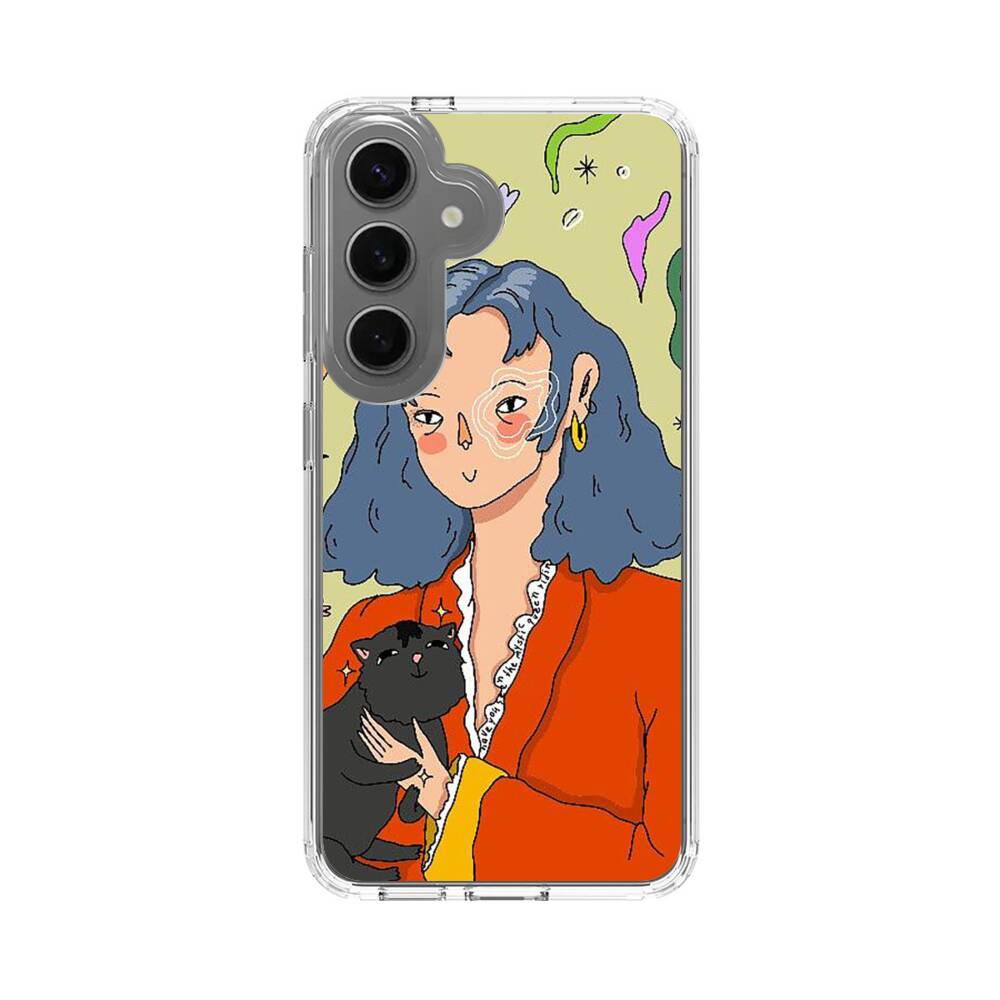 Dame mit Katze Samsung Galaxy S25 Plus Silikon Hülle● Sehr robust & langlebig